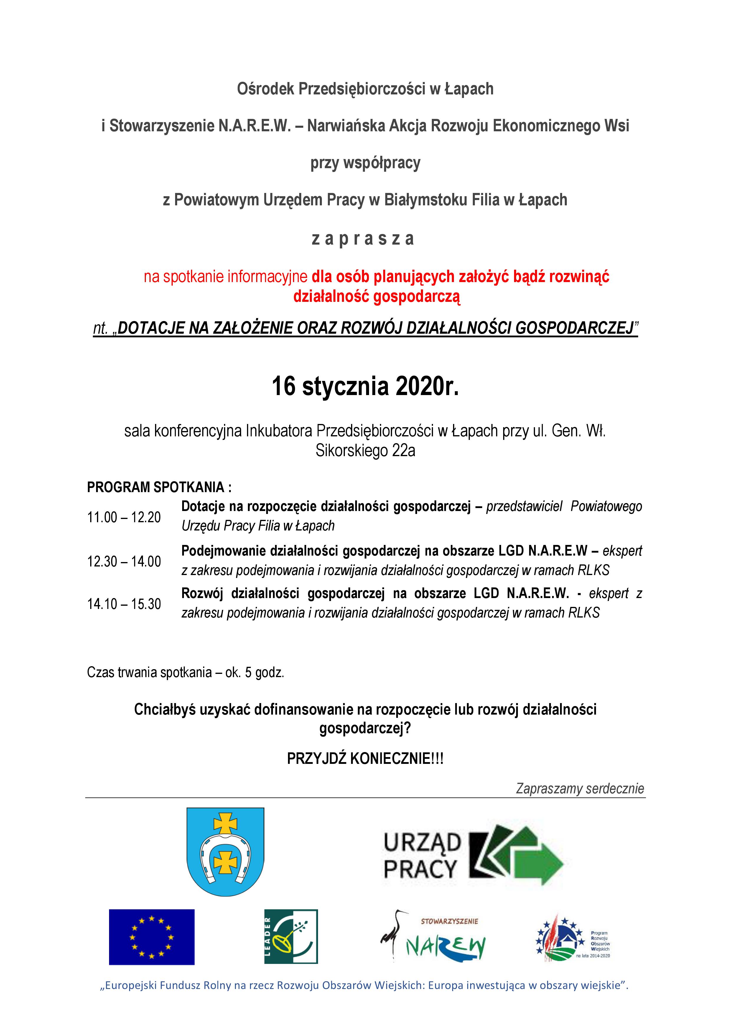 Spotkanie informacyjne dla wnioskodawców z zakresu podejmowania i rozwijania działalności gospodarczej