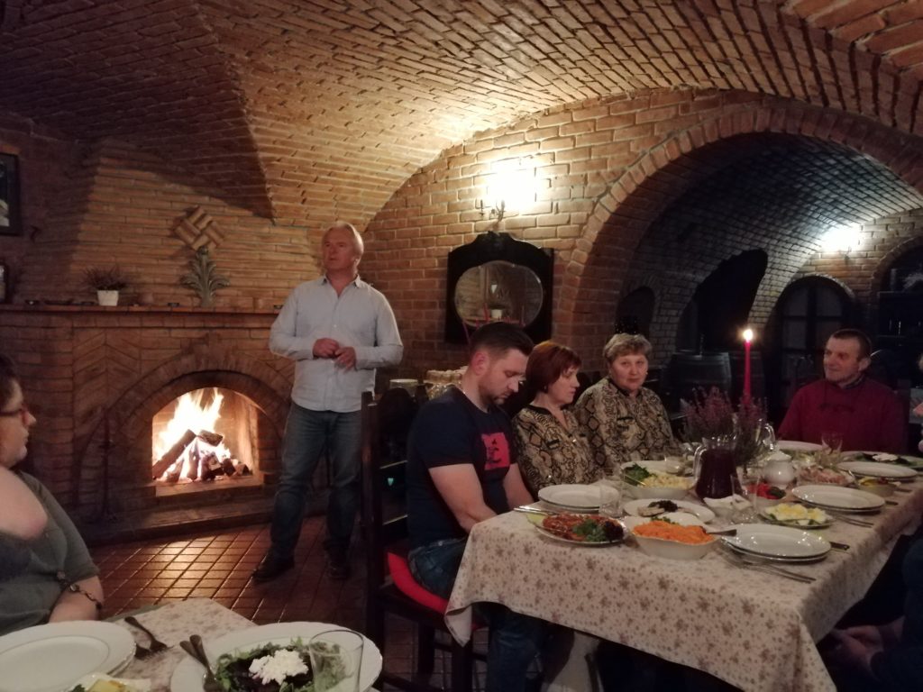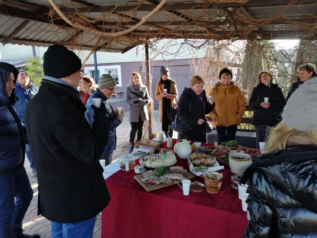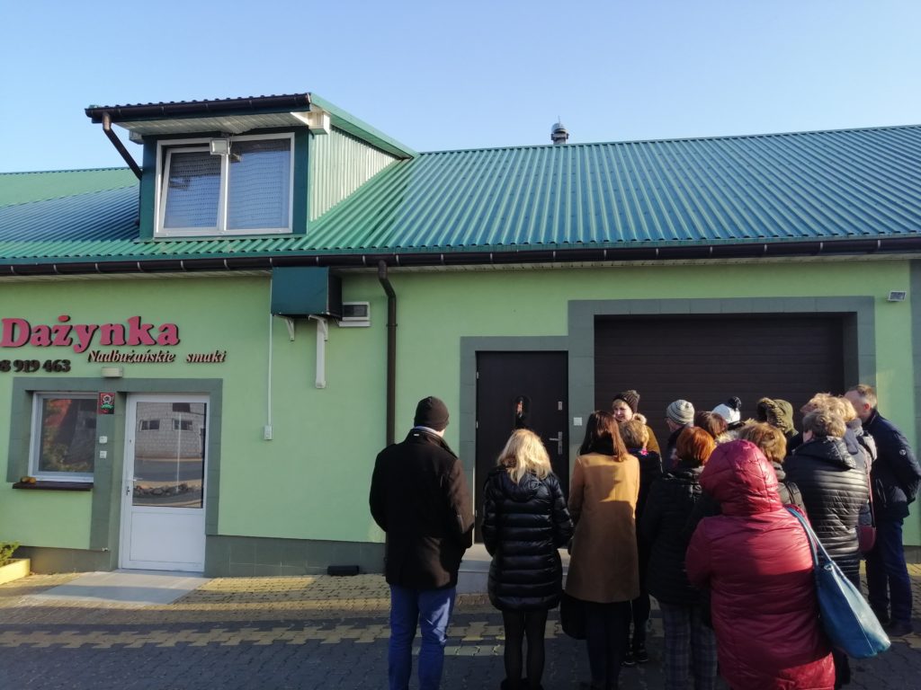 W dniach 5-6 grudnia br. organizowaliśmy wizytę studyjną na obszarze działania Stowarzyszenia „Lokalna Grupa Działania – Tygiel Doliny Bugu” pn. „Partnerska współpraca w tworzeniu, promocji i dystrybucji produktów rolno – spożywczych, przykłady innowacyjnych rozwiązań oraz rozwoju turystyki”. W wizycie uczestniczyli przedstawiciele organizacji pozarządowych, przedsiębiorcy, producenci rolni oraz rolnicy zainteresowani utworzeniem oraz w współpracą z inkubatorem przetwórstwa lokalnego planowanego do utworzenia na obszarze działania LSR Stowarzyszenia N.A.R.E.W. . Wizyta przyczyniła się do poznania dobrych praktyk w zakresie partnerskiej współpracy w tworzeniu, promocji i dystrybucji produktów rolno-spożywczych, a także do zapoznania się z rozwiązaniami organizacyjno-prawnymi, budowlano-technologicznymi, oraz zasadami funkcjonowania inkubatorów przetwórstwa lokalnego. Uczestnicy odwiedzili m.in. Firmę Solana zajmującą się produkcją kiszki ziemniaczanej i pierogów, kompleks turystyczny prowadzony przez Gminę Siemiatycze, Gospodarstwo Sadownicze Alina Paluch i córka, które w ramach swojej działalności zajmuje się produkcją soków, oraz prowadzeniem inkubatora przetwórstwa lokalnego. Odwiedziliśmy też: Dwór w Zabużu, Oberża, Impresja i Dworek Zaścianek gdzie odbyła się prelekcja na temat małej przetwórni spożywczej. Byliśmy też w firmie „Dażynka” Nadbużańskie Smaki zajmującej się wyrobem wędlin i serów, oraz w Centrum Edukacji Przyrodniczej w Korycinach gdzie również został utworzony inkubator przetwórstwa lokalnego.