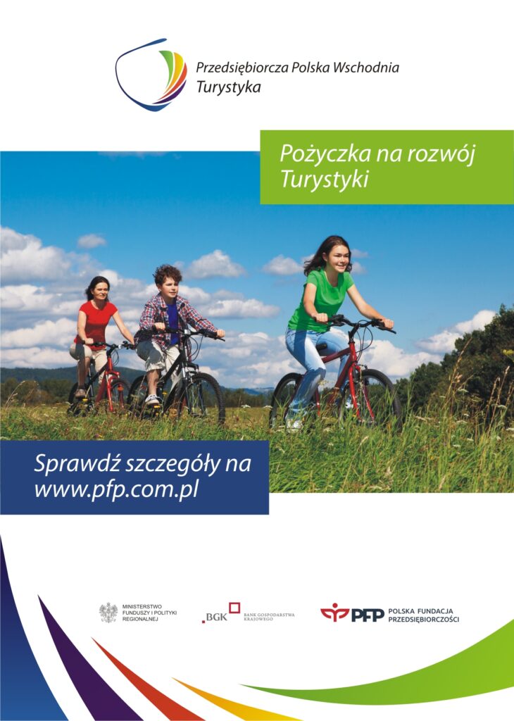 Polska Fundacja Przedsiębiorczości (PFP) podpisała w dniu 24.02.2021 r. Umowę Operacyjną na utworzenie Instrumentu Finansowego Pożyczka na Rozwój Turystyki. Pożyczki udzielane są przez PFP ze środków udostępnionych przez Bank Gospodarstwa Krajowego (BGK), z przeznaczeniem na finansowanie przedsięwzięć mikro-, małych i średnich przedsiębiorstw z obszaru Polski Wschodniej. Projekt Przedsiębiorcza Polska Wschodnia – Turystyka jest finansowany ze środków Ministra Finansów, Funduszy i Polityki Regionalnej.